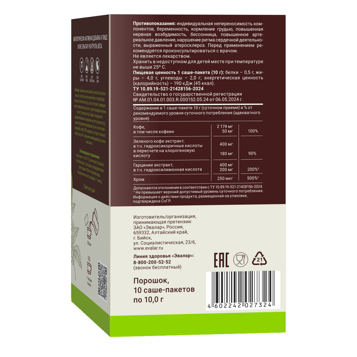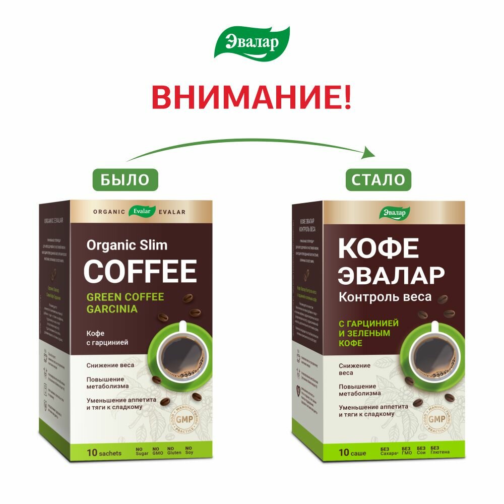 Кофе Эвалар Контроль веса (с гарцинией), 10 саше-пакетов, Organic Evalar интересное: