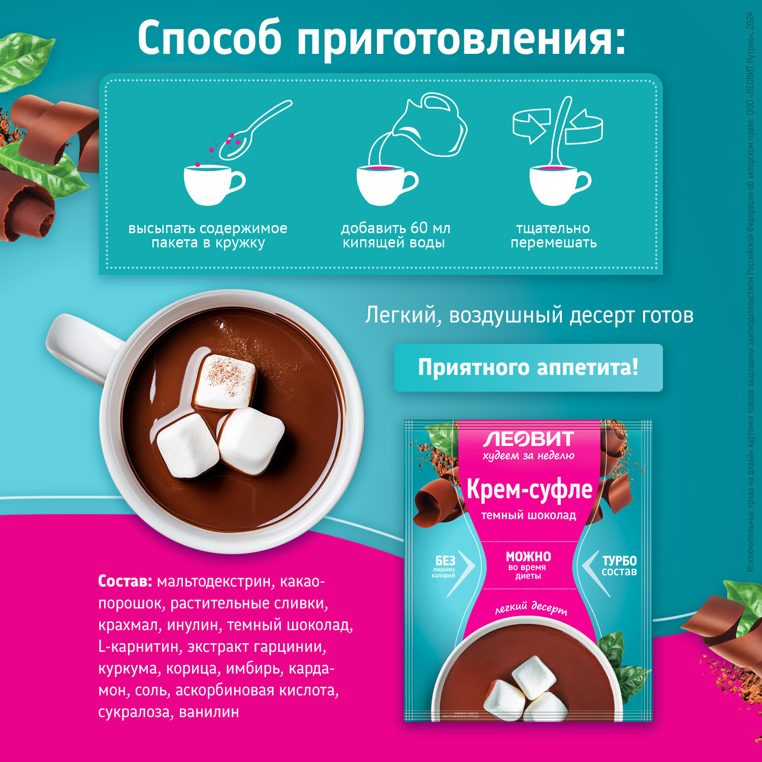 Крем суфле шоколадный 5 шт по 40 гр жиросжигатель для похудения Худеем за неделю Леовит быстрого приготовления интересное: