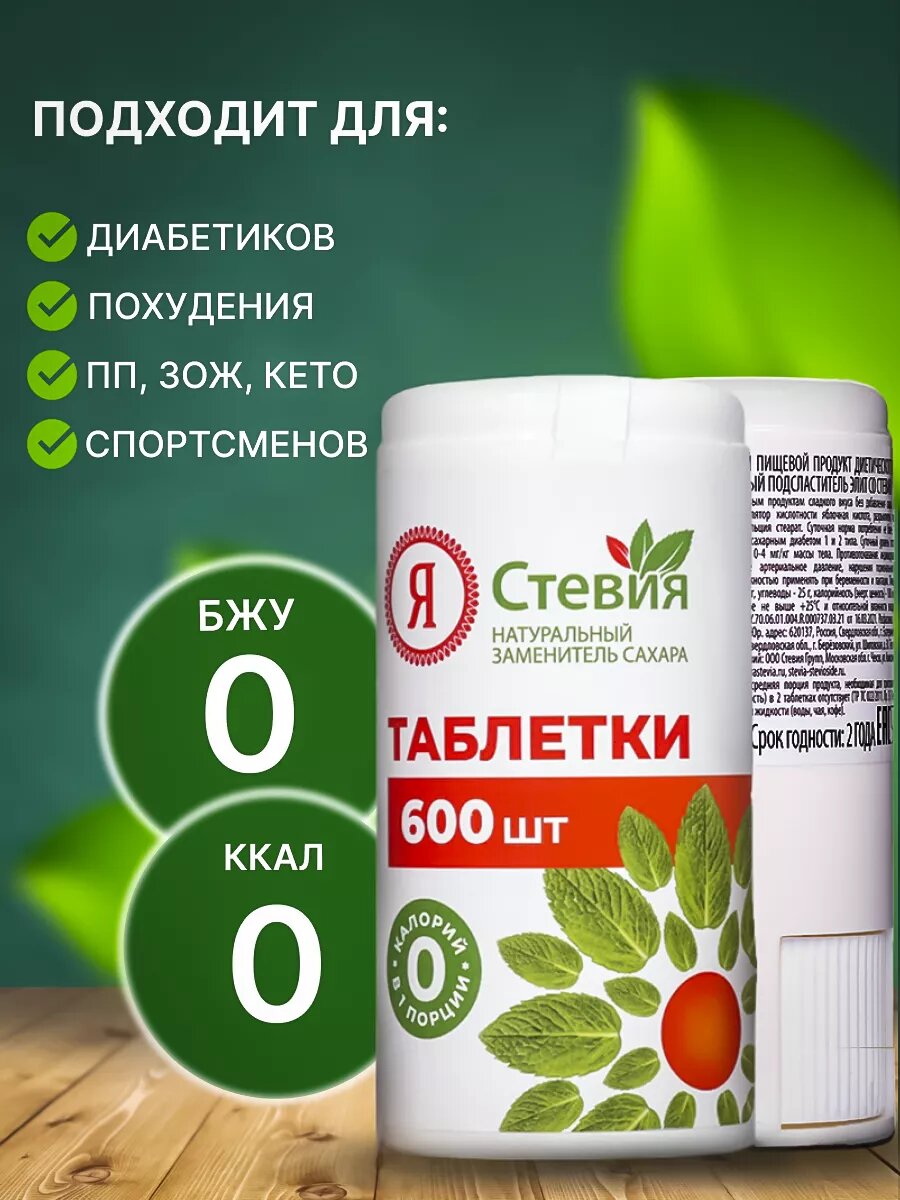 Купить Сахарозаменитель стевия таблетки 600 шт, натуральный заменитель сахара "Я Стевия"