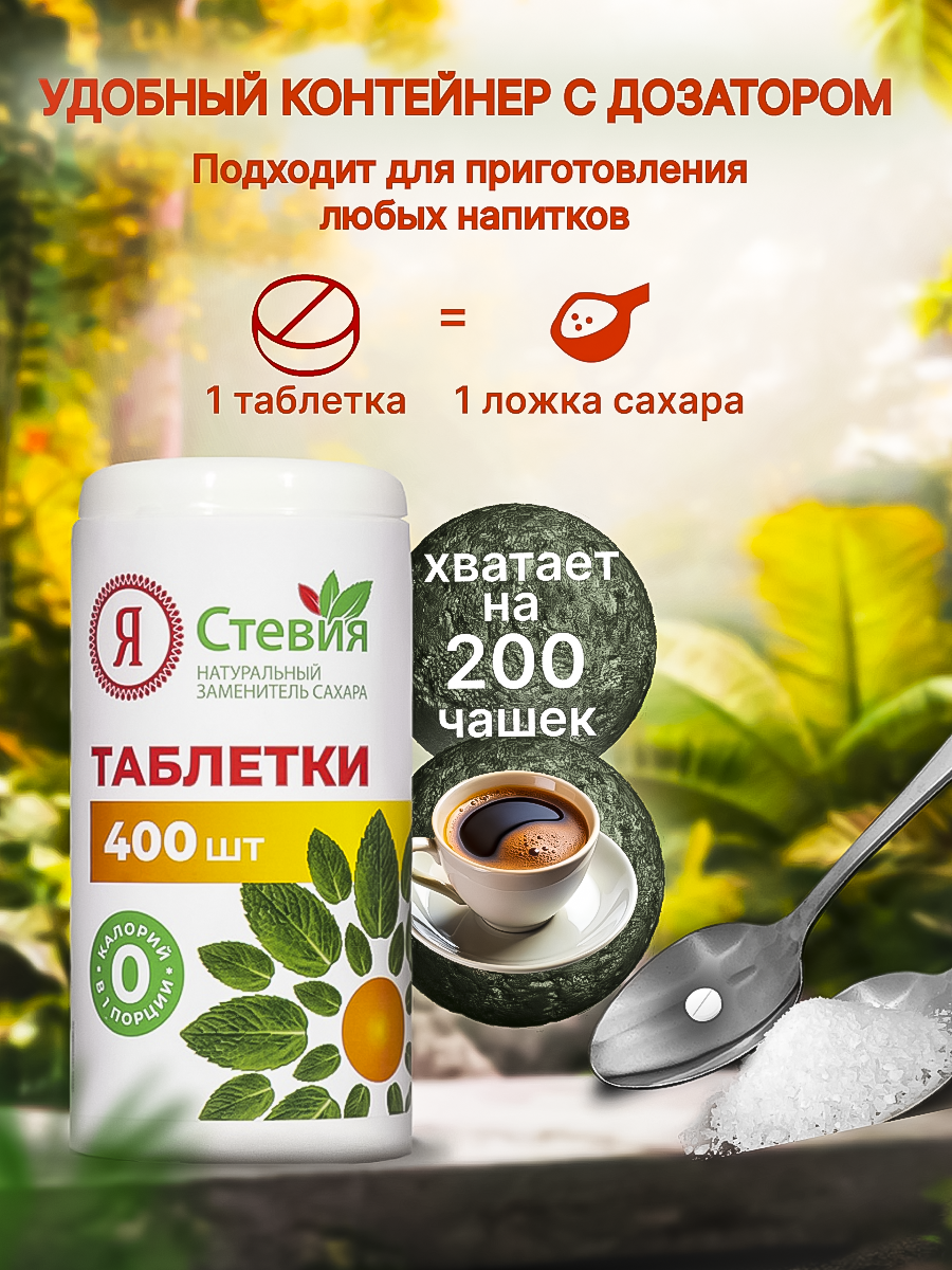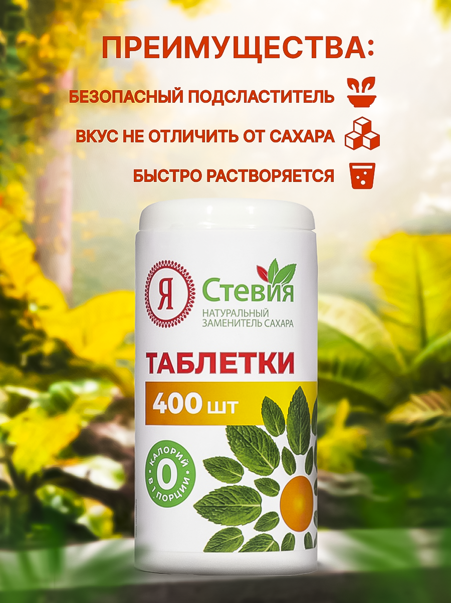 Сахарозаменитель стевия в таблетках 400 шт натуральный подсластитель "Я Стевия"