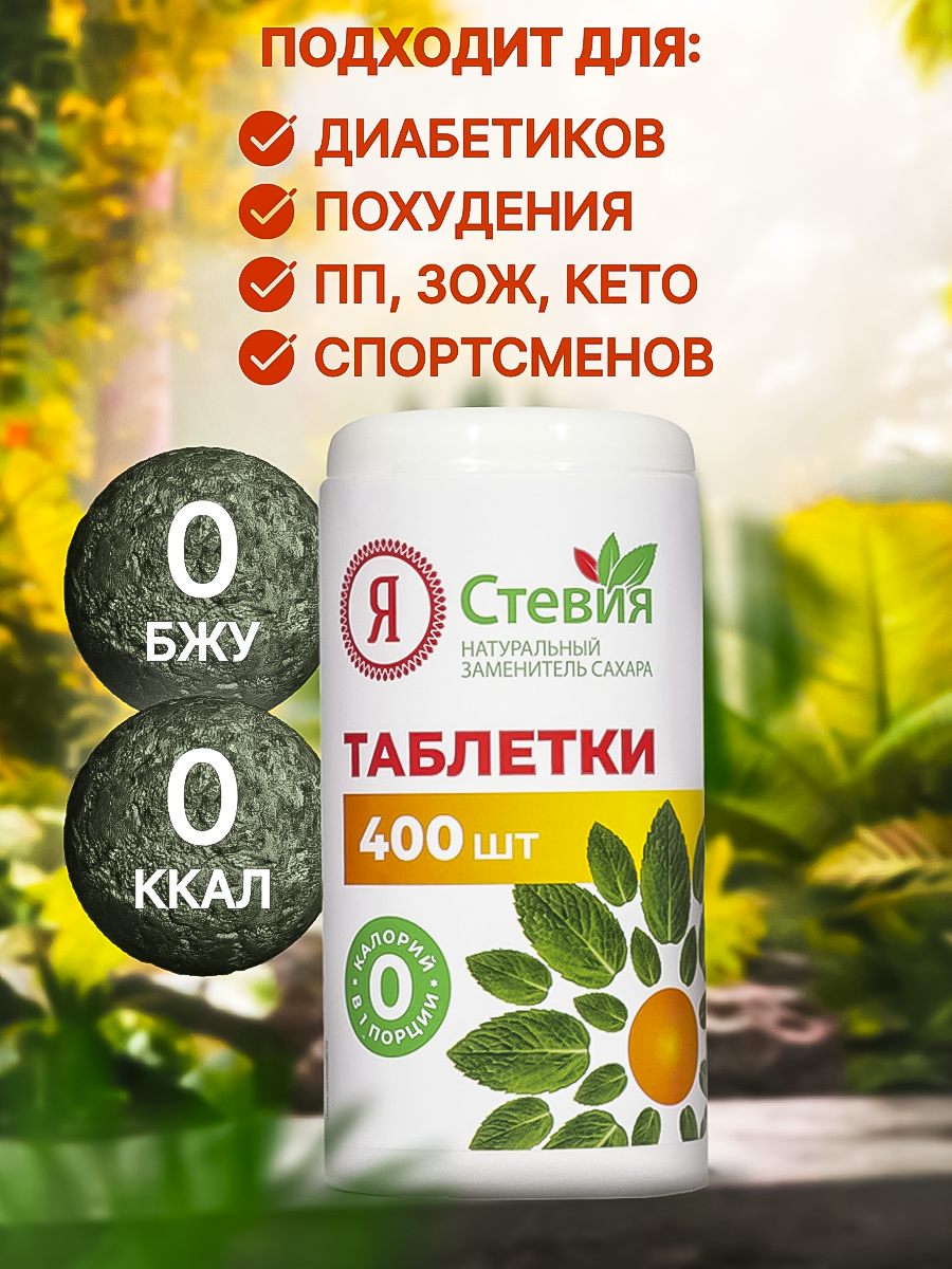 Сахарозаменитель натуральная стевия в таблетках, 400 шт. Для диабетиков, кето, зож, пп "Я Стевия" интересное: