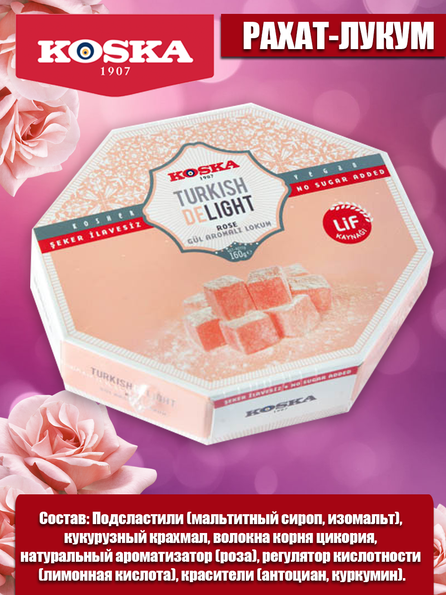 Купить KOSKA Рахат лукум 160 гр без сахара с ароматом розы (DIYABETIK LOKUM GUL AROMALI)