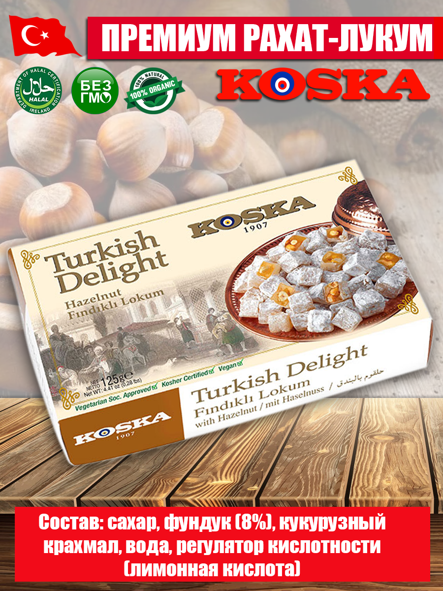 СохранитьРахат-лукум с фундуком KOSKA 125 гр (FINDIKLI LOKUM), в картонной коробке интересное: