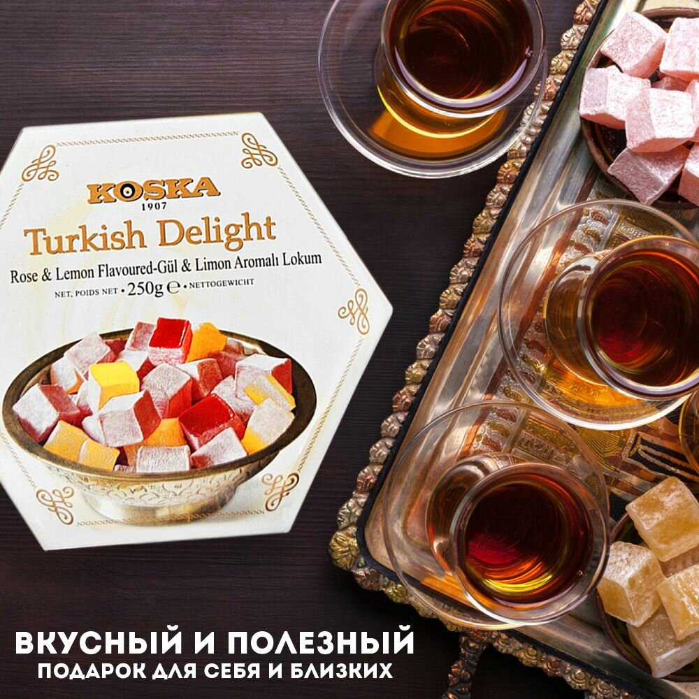 Рахат-лукум (турецкая сладость) со вкусом розы и лимона без ГМО (Turkish Delight Коска, 250г