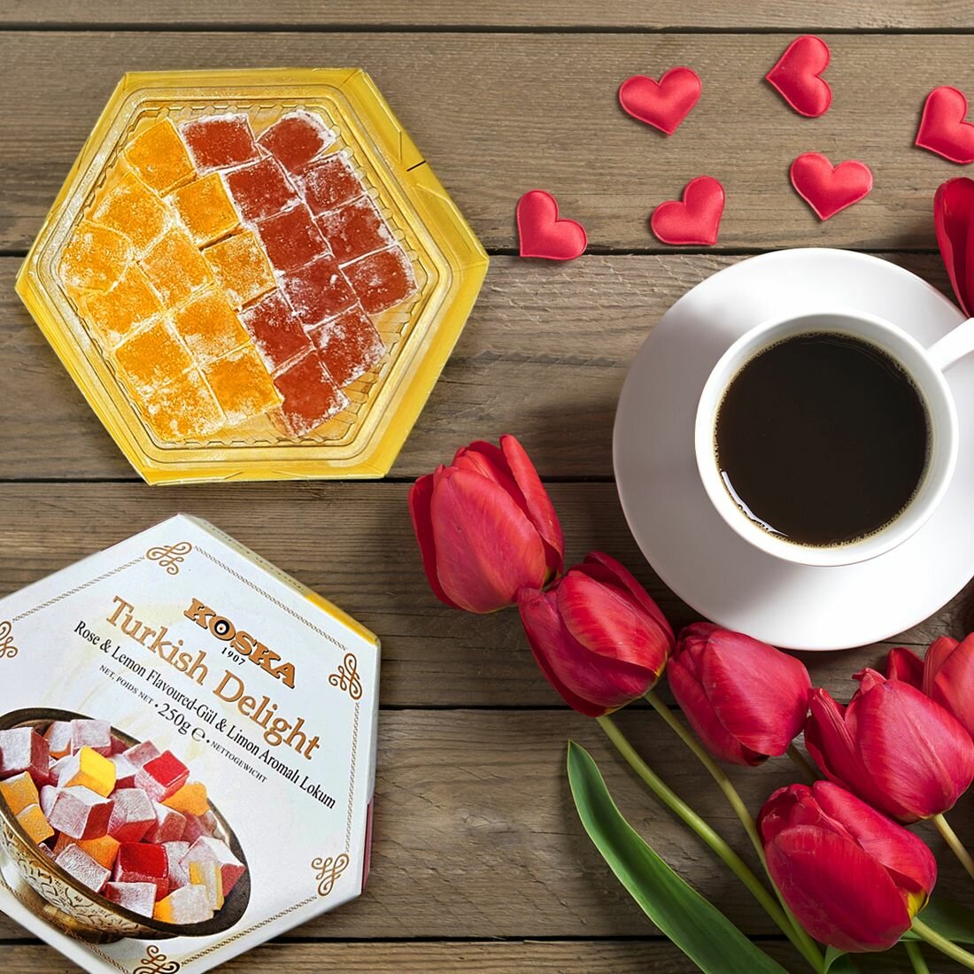 Рахат-лукум с ароматом розы и лимона KOSKA 125 гр, в подарочной, картонной упаковке