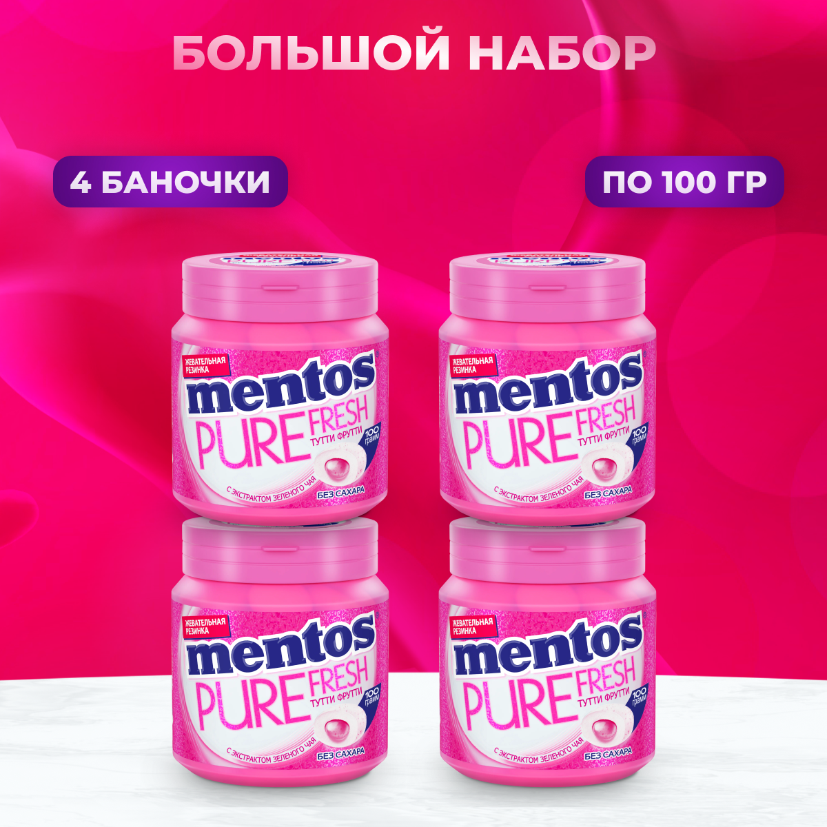 Купить Mentos Жевательная резинка Pure Fresh Тутти-Фрутти 4 шт по 100 г
