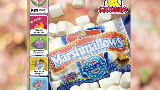 Ниже Вы можете прочитать отзывы на Маршмеллоу Guandy BBQ Original 200г, без глютена, ванильный вкус, ознакомится с подробными характеристиками, посмотреть интересные обзоры и фотографии на Маршмеллоу Guandy BBQ Original 200г, без глютена, ванильный вкус.