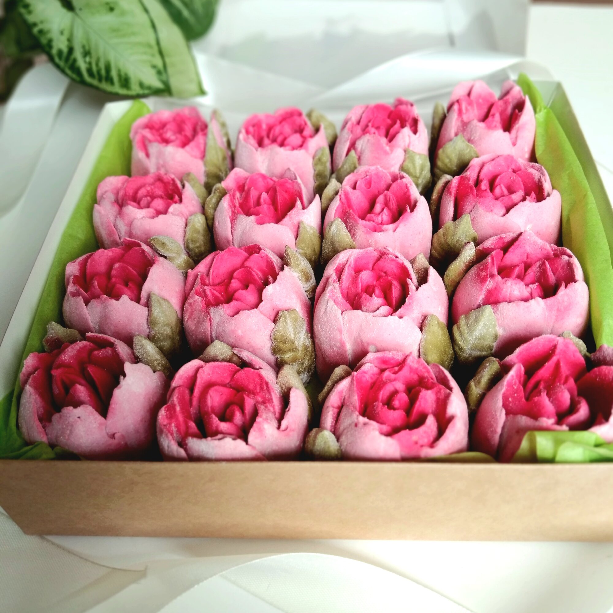 Зефирные тюльпаны со вкусом клубника+мята ручная работа подарочная упаковка натуральный состав