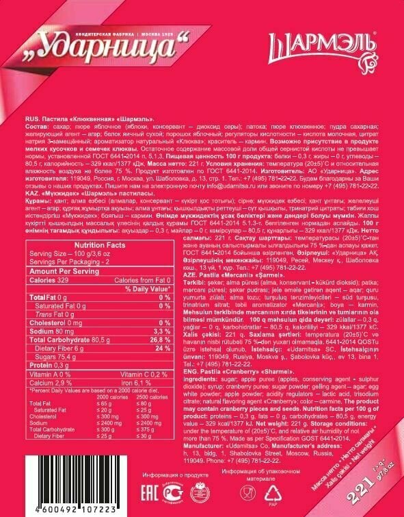 Ниже Вы можете прочитать отзывы на Пастила клюквенная "Шармэль", 221г, ознакомится с подробными характеристиками, посмотреть интересные обзоры и фотографии на Пастила клюквенная "Шармэль", 221г.