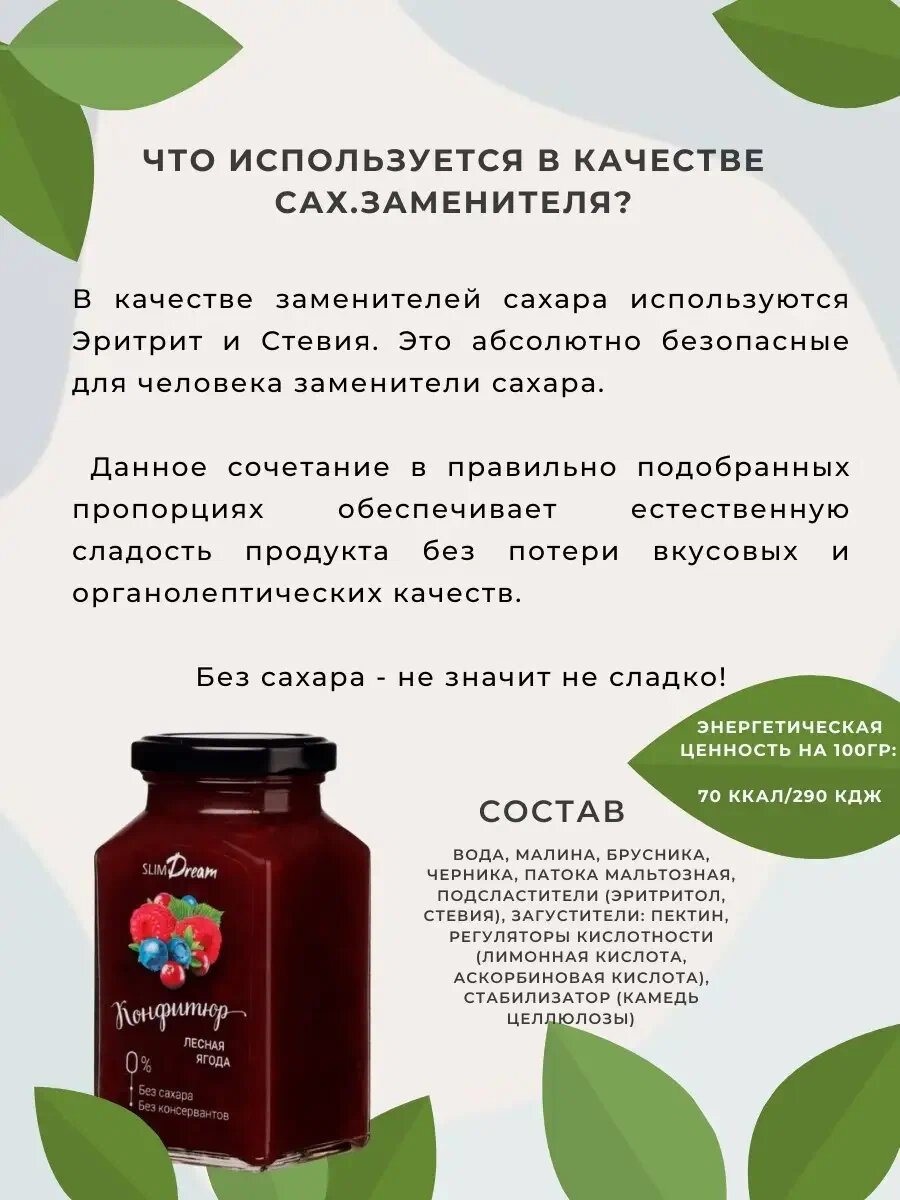 СохранитьКонфитюр "Slim Dream", лесные ягоды, без сахара, 300 г, 2 упаковки интересное: