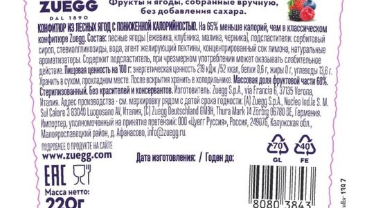 Ниже Вы можете прочитать отзывы на Конфитюр Zuegg Лесные ягоды без сахара, 220 г, ознакомится с подробными характеристиками, посмотреть интересные обзоры и фотографии на Конфитюр Zuegg Лесные ягоды без сахара, 220 г.