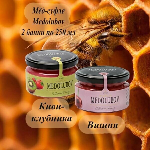 Купить Мед суфле набор Медолюбов 2 вкуса по 250 мл Киви-клубника Вишня