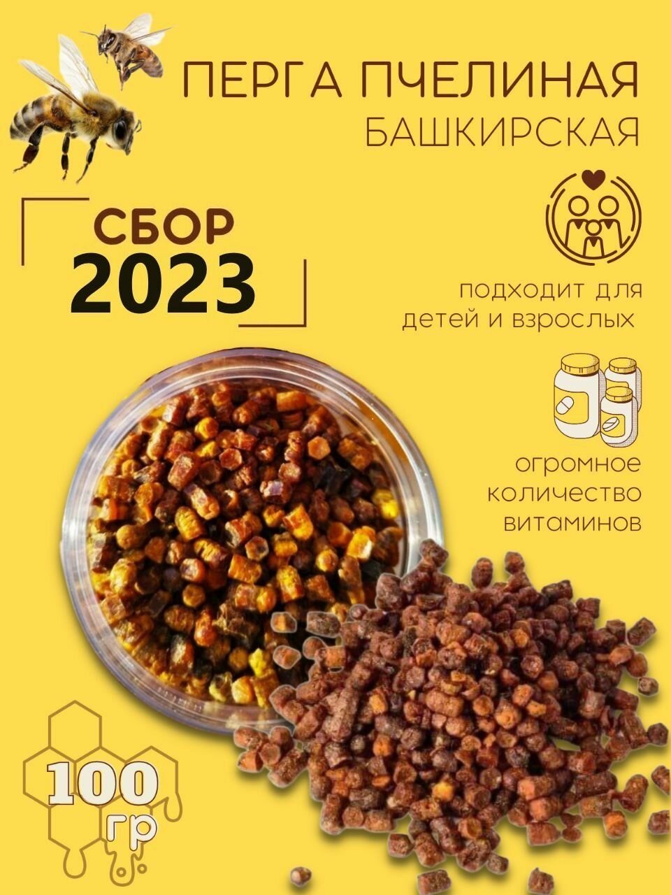 | Состав | Башкирская, натуральная пчелиная перга 2023 года. |