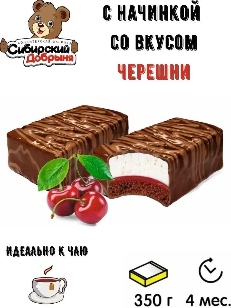 Пирожное бисквитное "вечерняя премьера" с суфле и начинкой со вкусом черешни в темной глазури, 400 г , мишка в малиннике , Сибирский добрыня