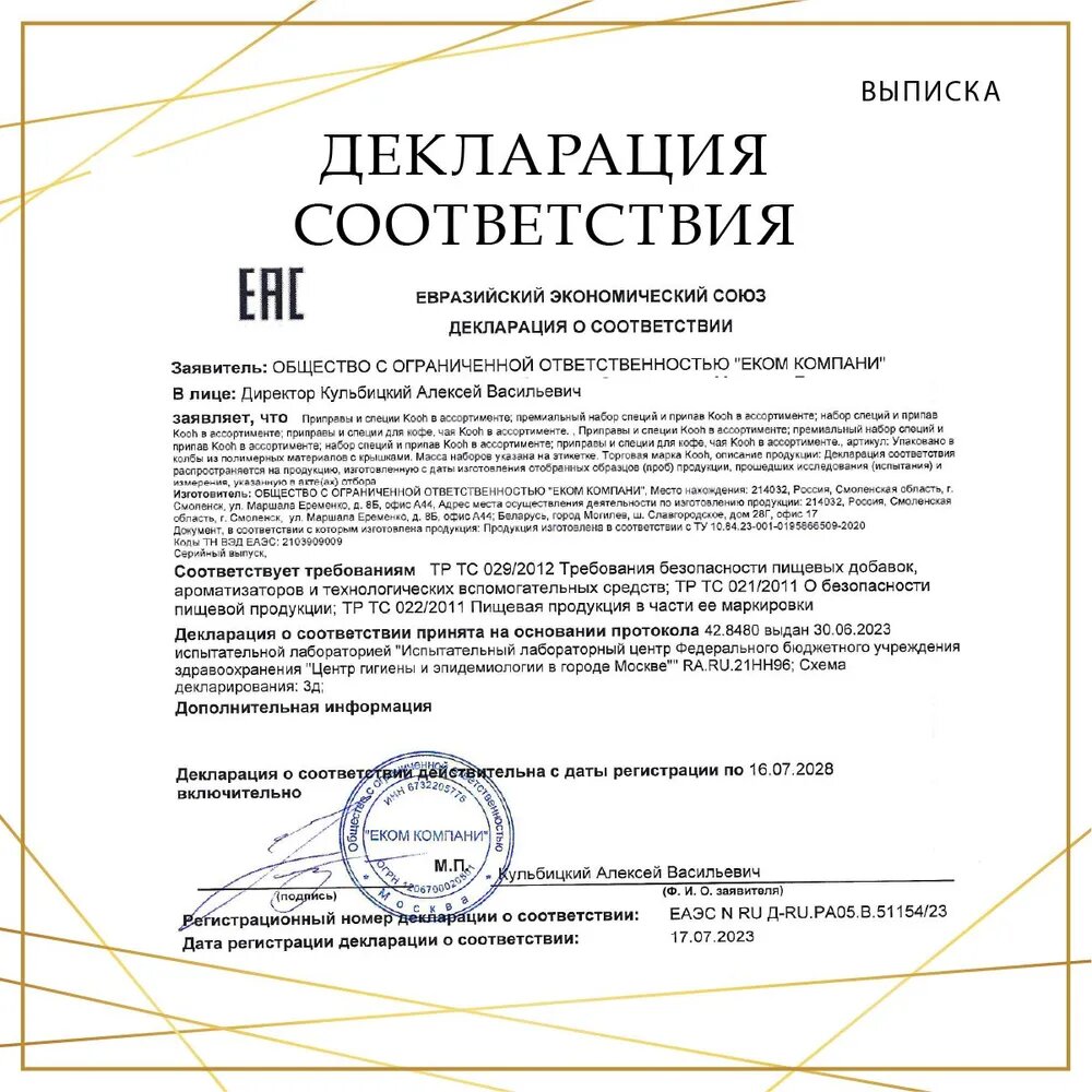 | Стандарты производства | ТУ 10.84.23-001-0195866509-2020 |