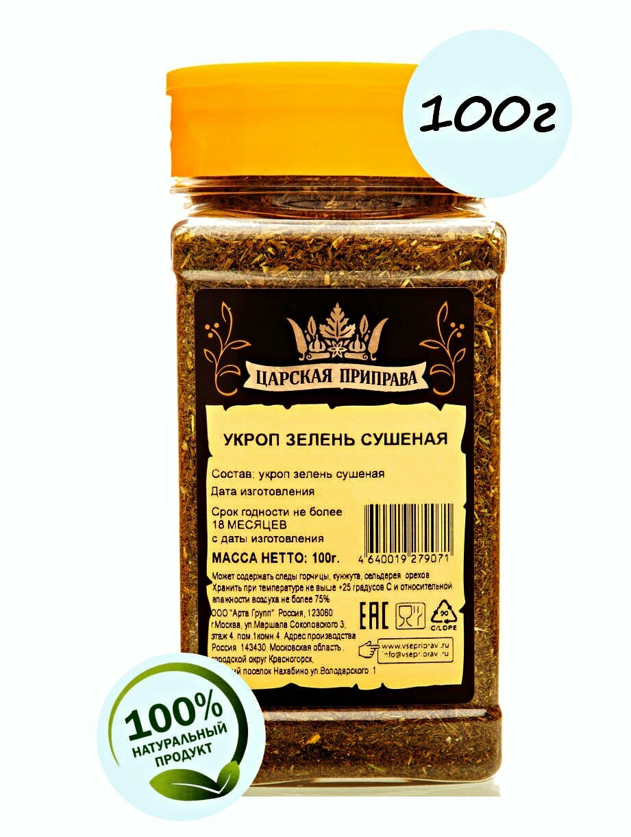 Укроп сушеный, натуральный, зелень Царская приправа, 100 г измельчённый интересное: