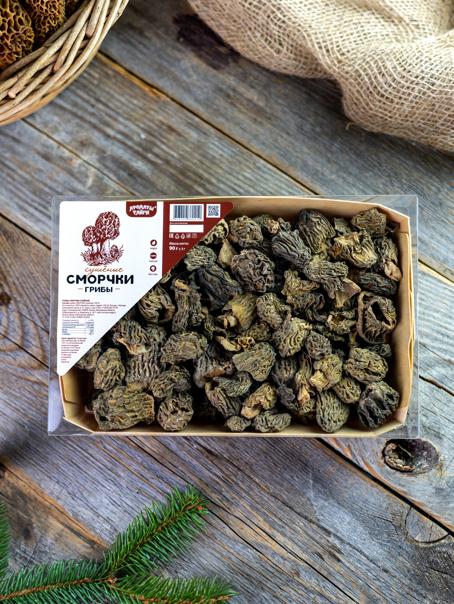 Сморчки сушеные "Ароматы тайги" 90гр, целые, берестяной лоток. интересное:
