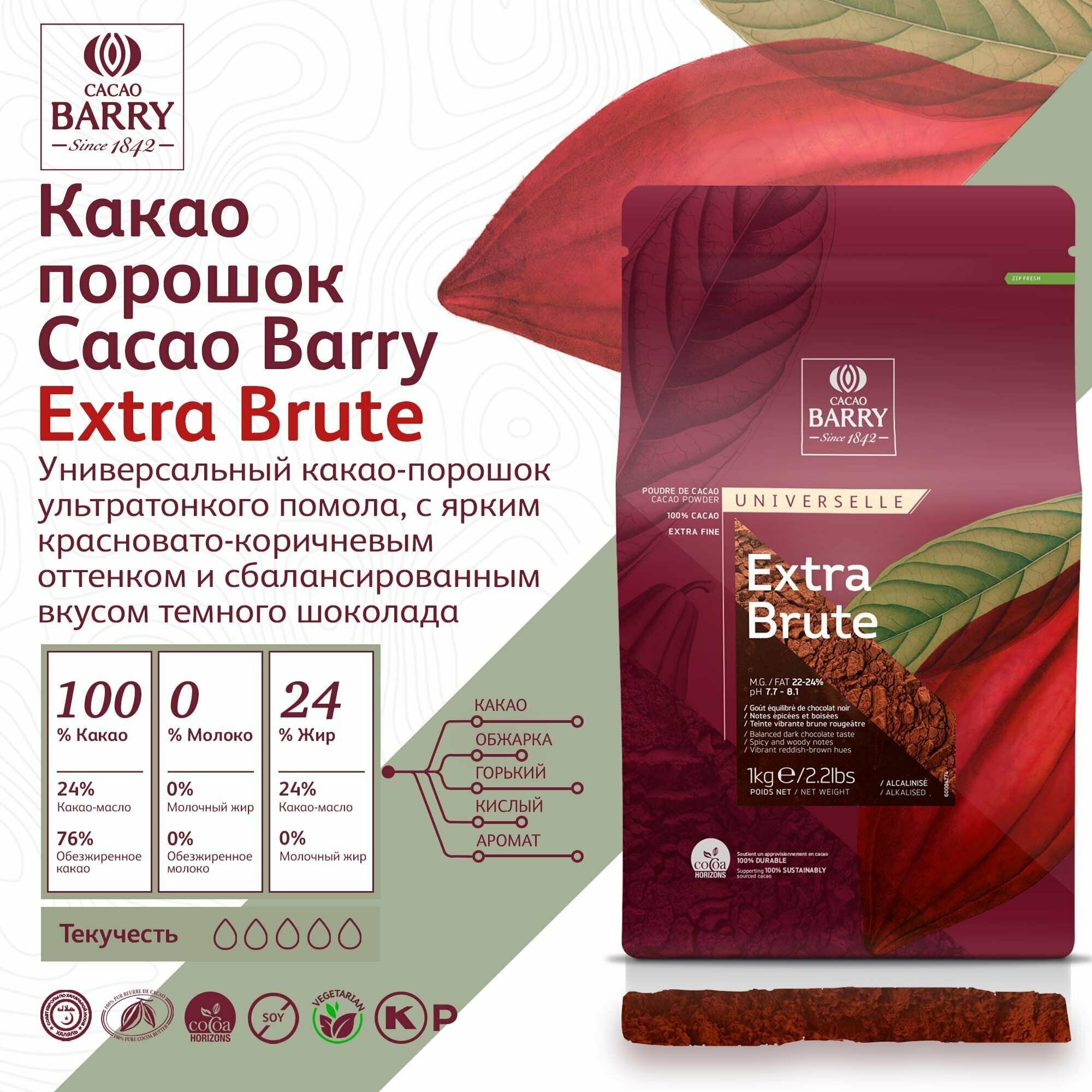 Какао-порошок Cacao Barry EXTRA-BRUTE, темно-красный алкализованный, 1 кг