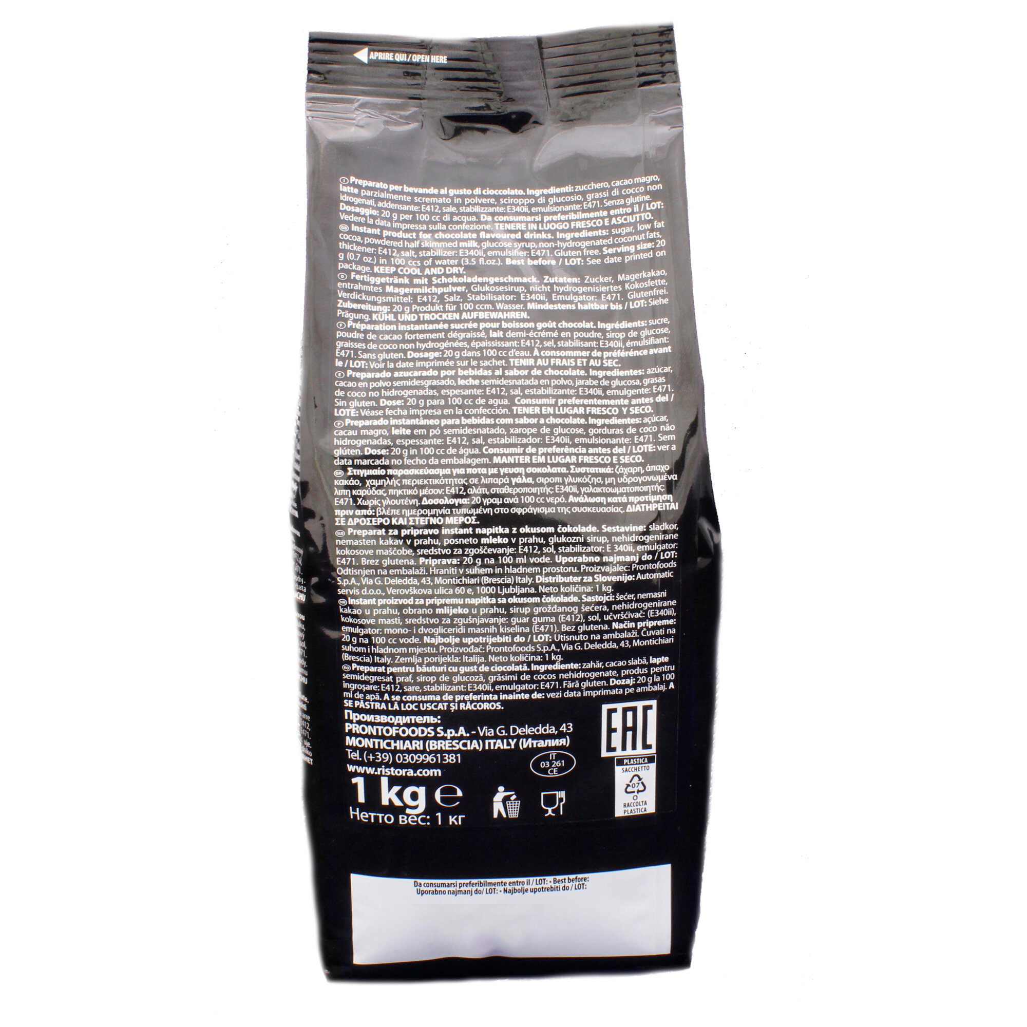 Горячий шоколад Ristora Premium, растворимый, без сахара, без ГМО, 1кг