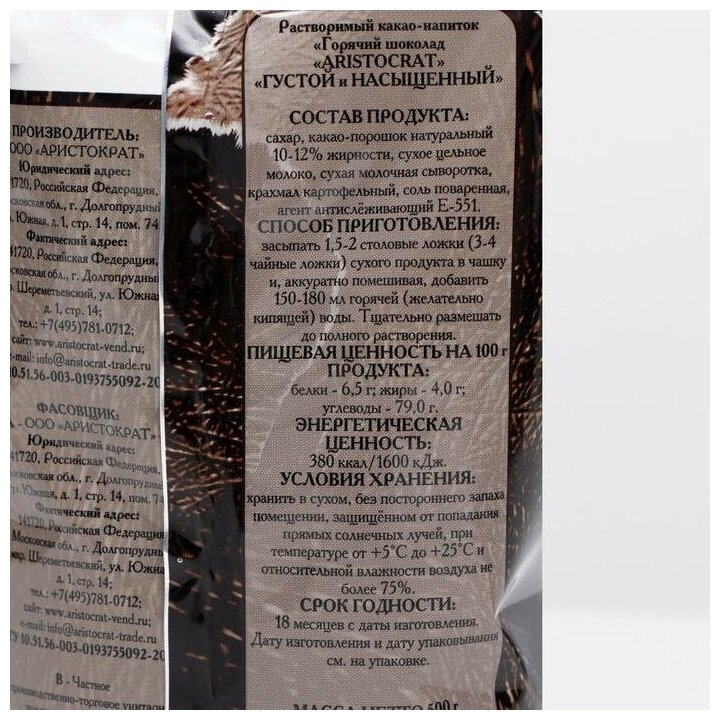 Купить Aristocrat Горячий шоколад Густой и насыщенный, натуральный, 500 г