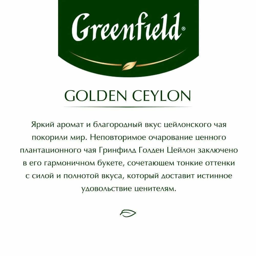 Купить Черный чай Greenfield "Golden Ceylon", пакетированный, классический, 25 пакетиков