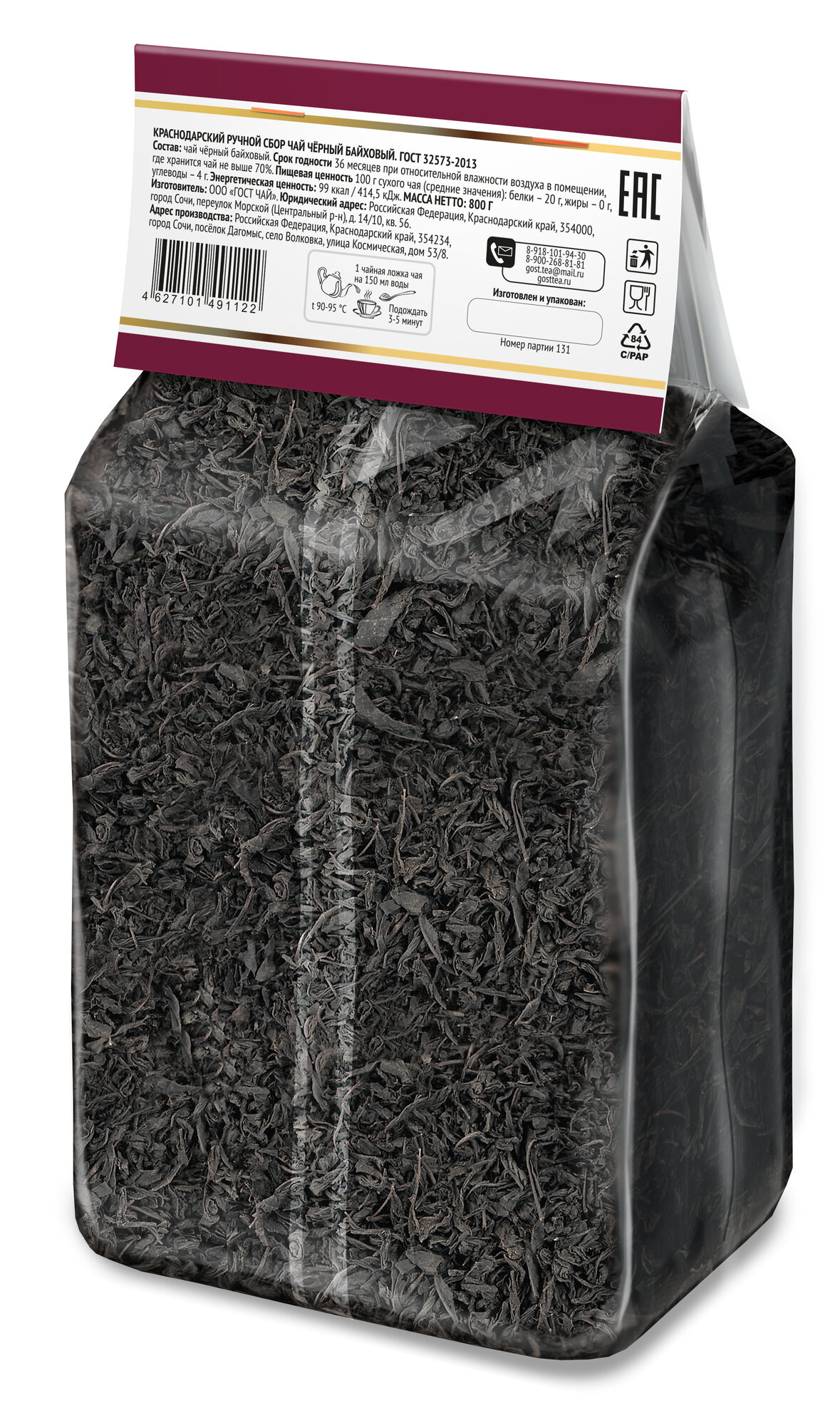 Чай черный краснодарский ГОСТ ЧАЙ ручной сбор листовой, 100г