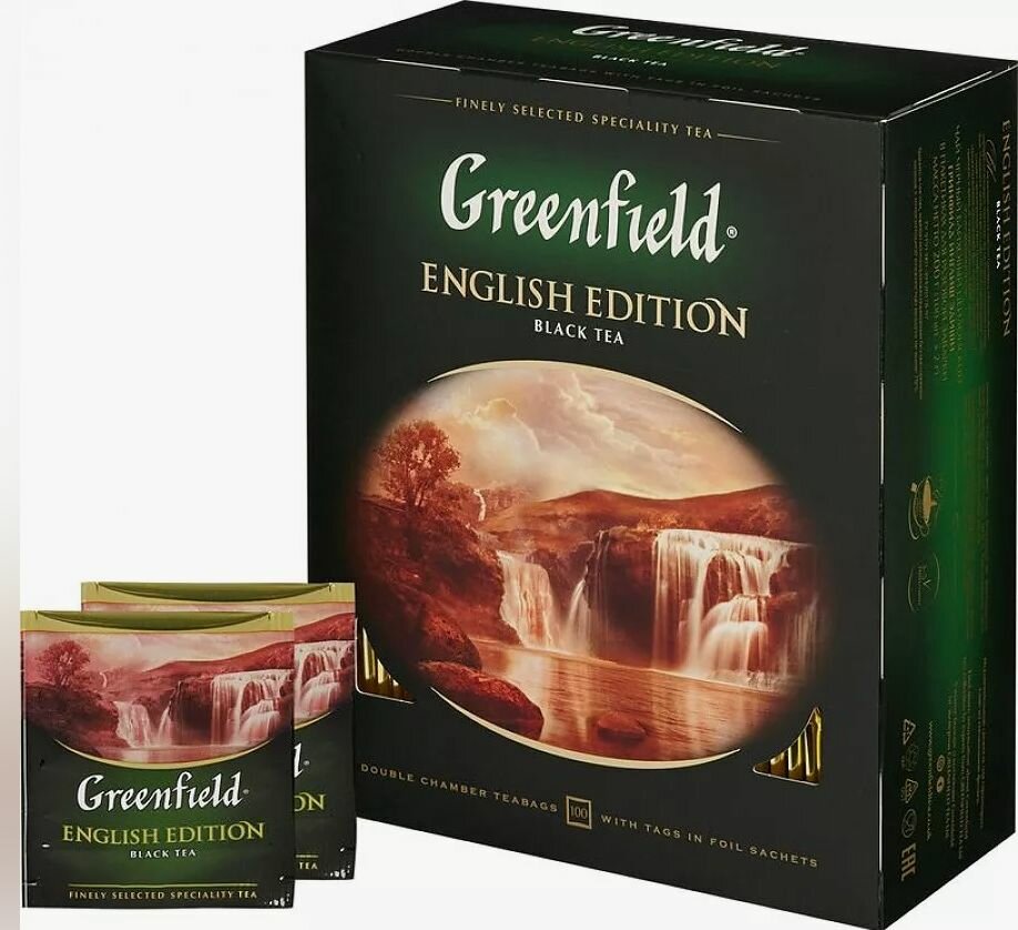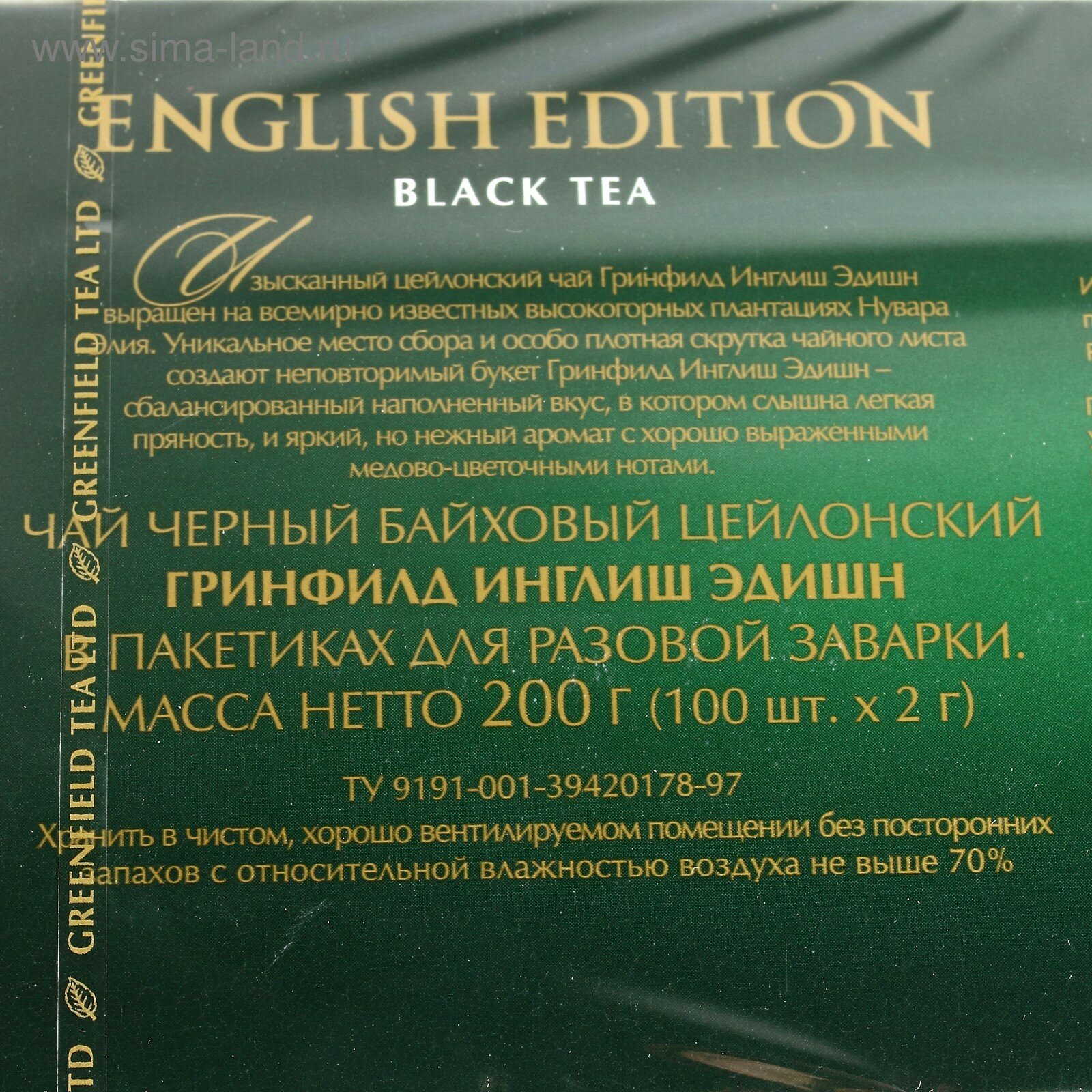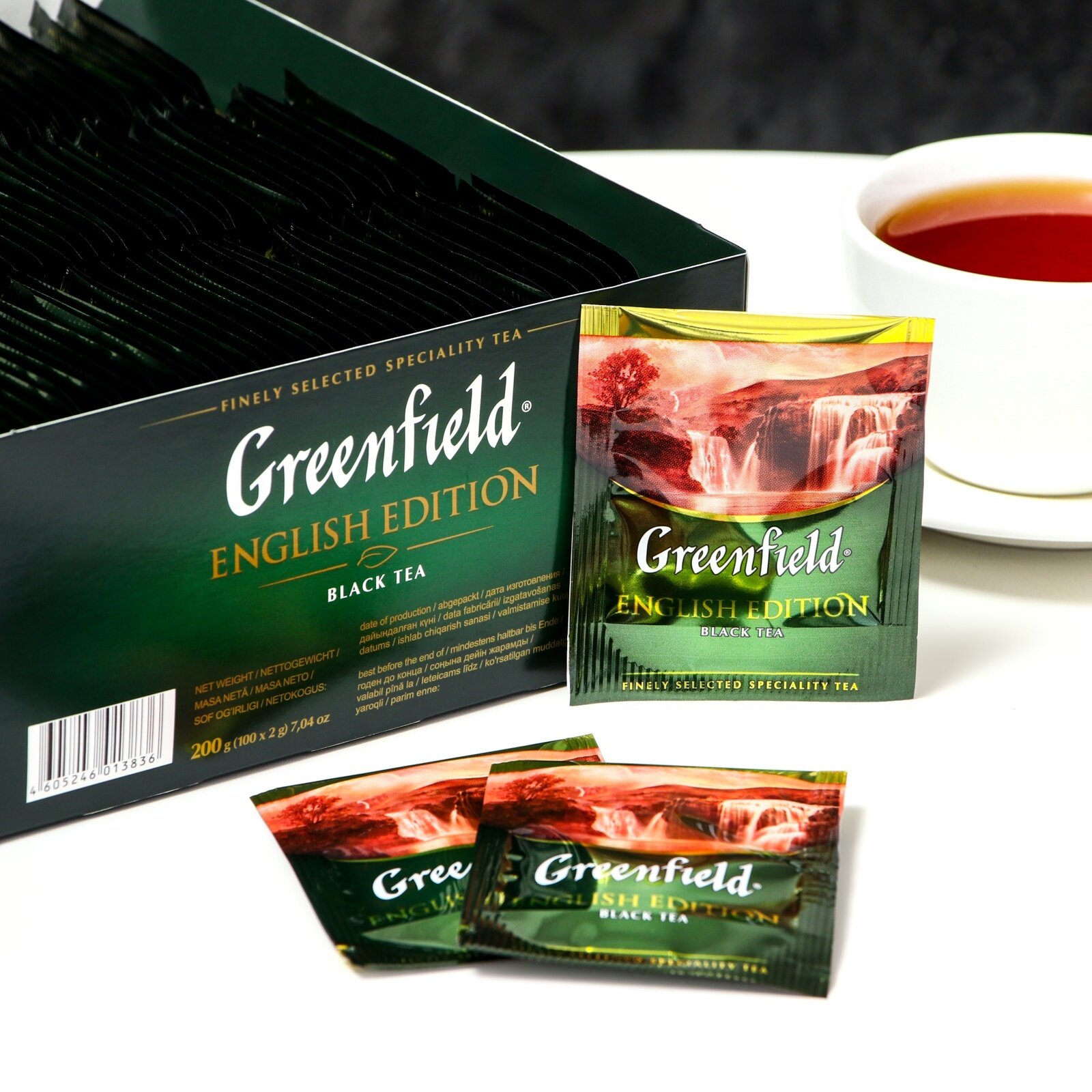 2шт - Чай черный в пакетиках (100шт) "English Edition". Чай гринфилд. Чай GREENFIELD, черный
