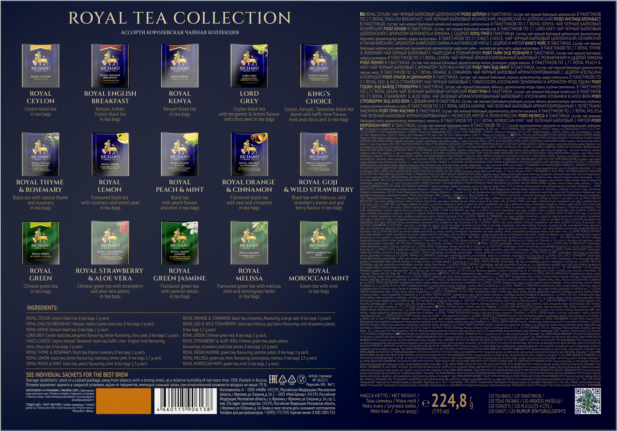Чай Richard Royal Tea Collection, подарочный набор 15 вкусов, 120 пак. интересное: