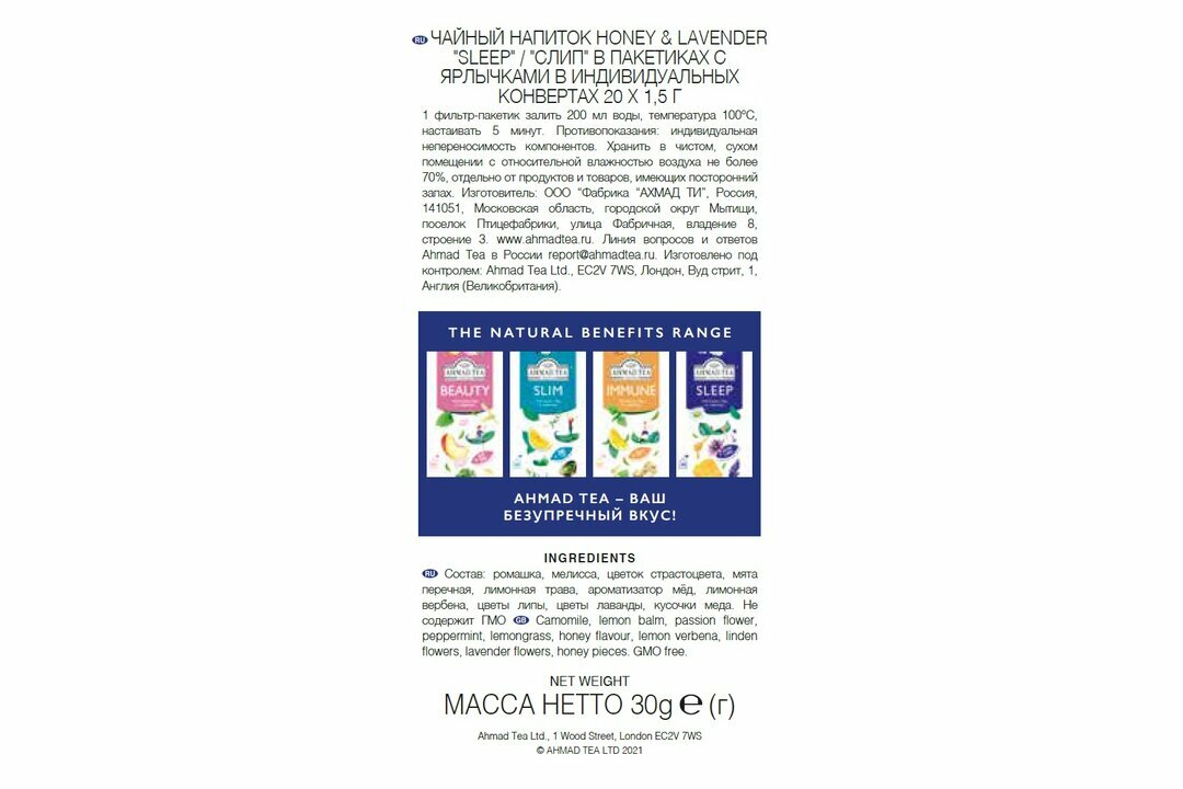 Чай травяной Ahmad Tea Sleep в пакетиках, 20 пак. интересное:
