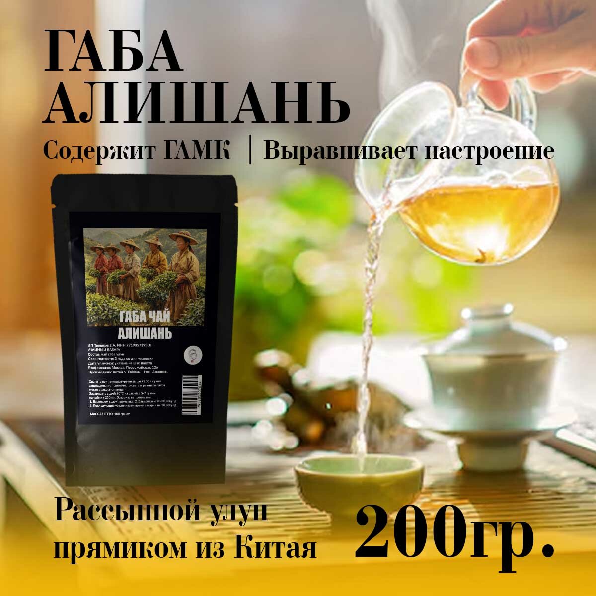 Габа чай Алишань улун о. Тайвань содержание гамк 200мг/100 г Вес 100 грамм