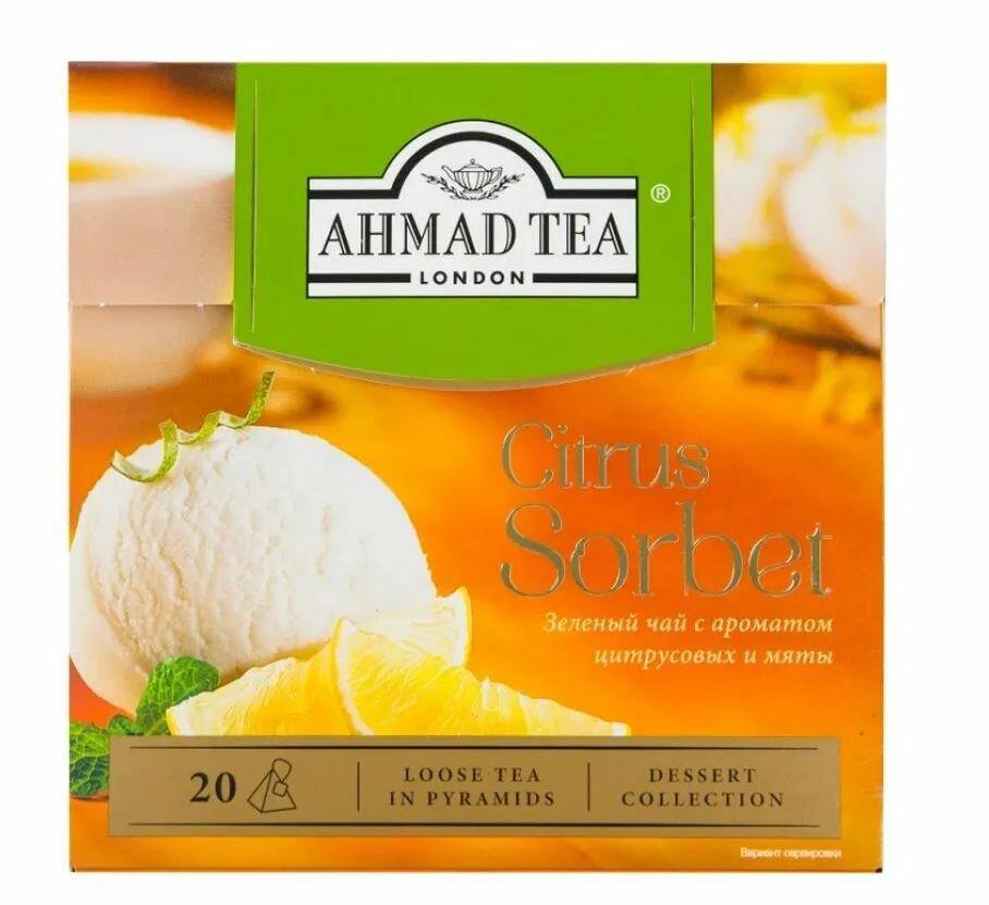 Чай зеленый Ahmad Tea Цитрусовый сорбет 20 пирамидок интересное: