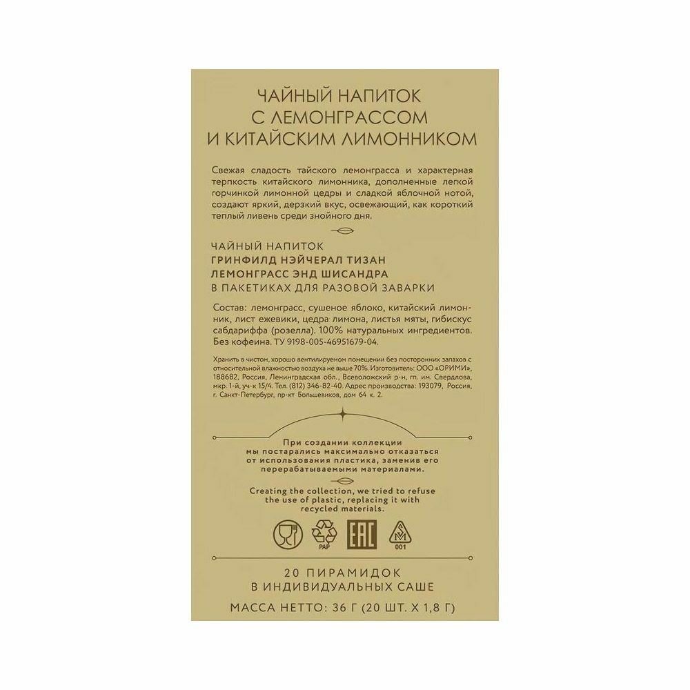 Чай в пирамидках травяной Greenfield Natural Tisane Lemongrassr&Schisandra(Лемонграсс энд Шисандра), 20*1,8 г интересное: