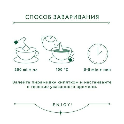| Способ приготовления | 1 пакетик чая залить кипятком 200 мл, дать настояться 5 минут |