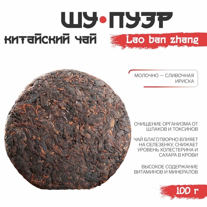 Купить Китайский выдержанный черный чай "Шу Пуэр. Lao ban zhang", 100 г, 2014, Юньнань, блин