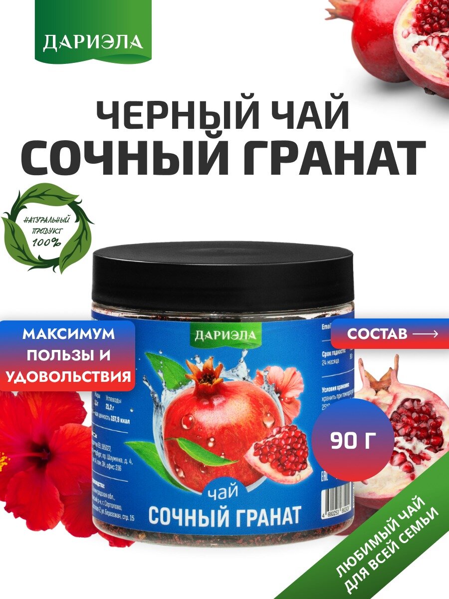 Чай "Сочный гранат", черный, среднелистовой, рассыпной 90 гр , ДАРИЭЛА интересное: