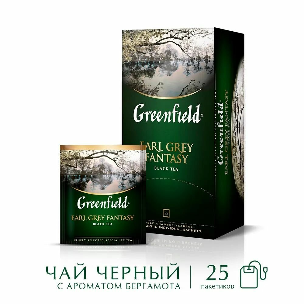 Чай черный Greenfield Earl Grey Fantasy, в пакетиках, 2 г × 25 шт.