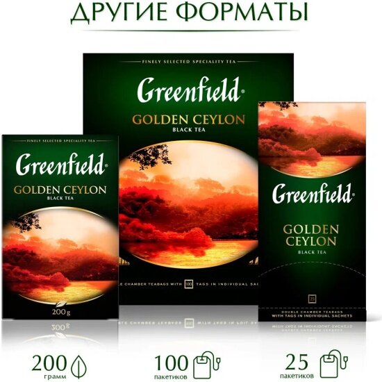 Чай GREENFIELD Golden Ceylon пак. черн. (2.00гx100п) картон double sachet 9 упаковок по 200 гр.