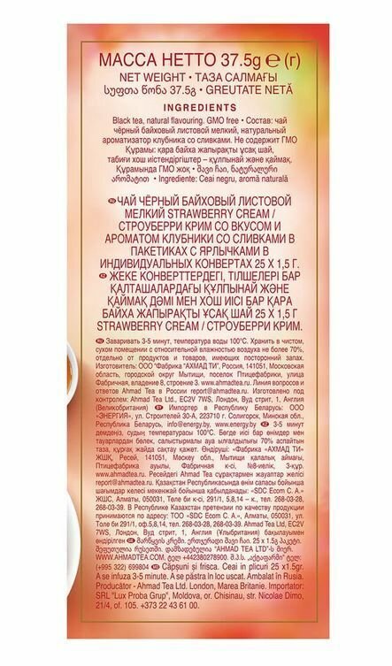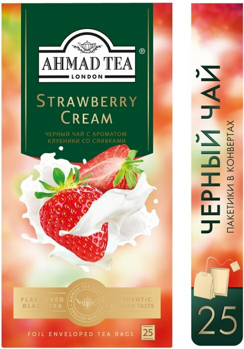 Купить Чай черный Ahmad Tea Строуберри Крим с ароматом клубники со сливками 25 пакетиков