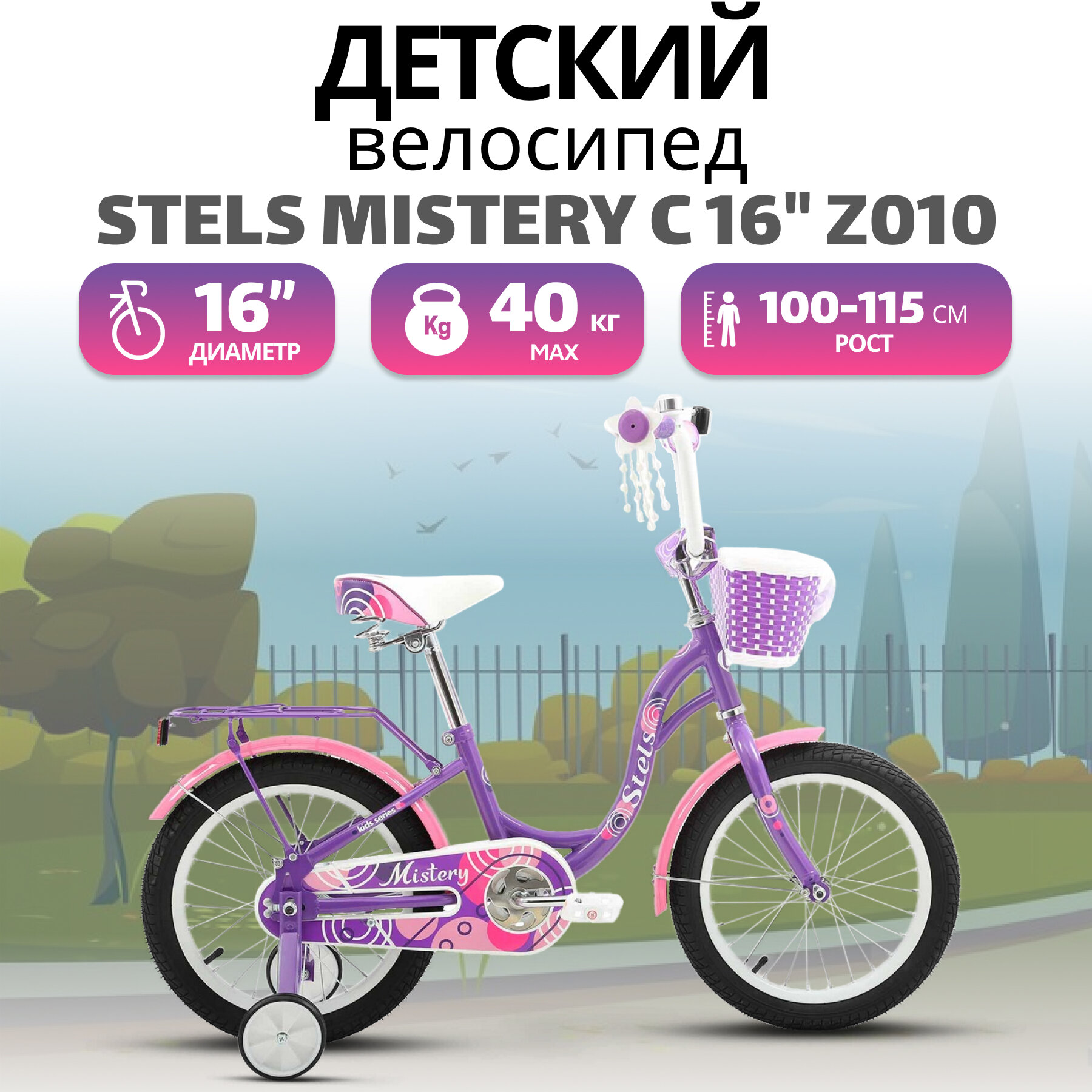 Детский велосипед STELS Mistery C 16" Z010 9.6" Фиолетовый, 2024 интересное: