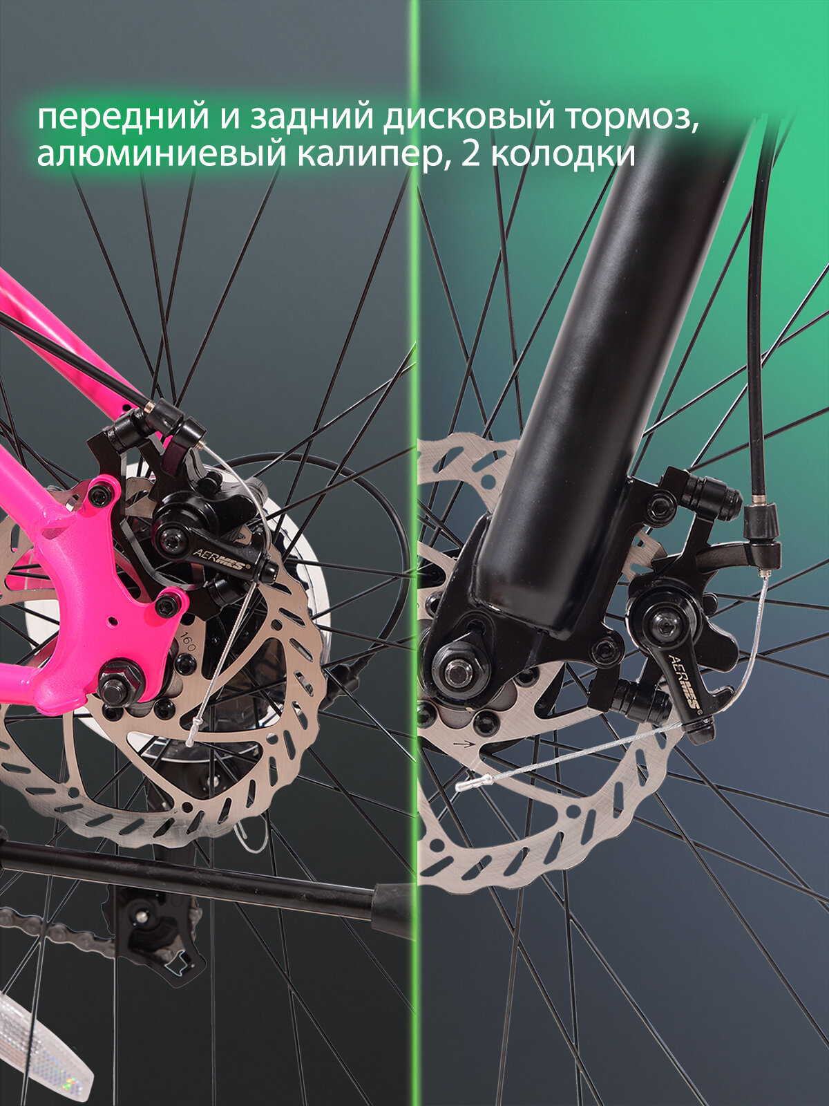 Велосипед подростковый горный дисковый 24" рост 130-145см 7 скоростей розовый рама 13" велик для 9 лет 7 лет 8 лет переключатель SHIMANO скоростной RUSH HOUR NX 405