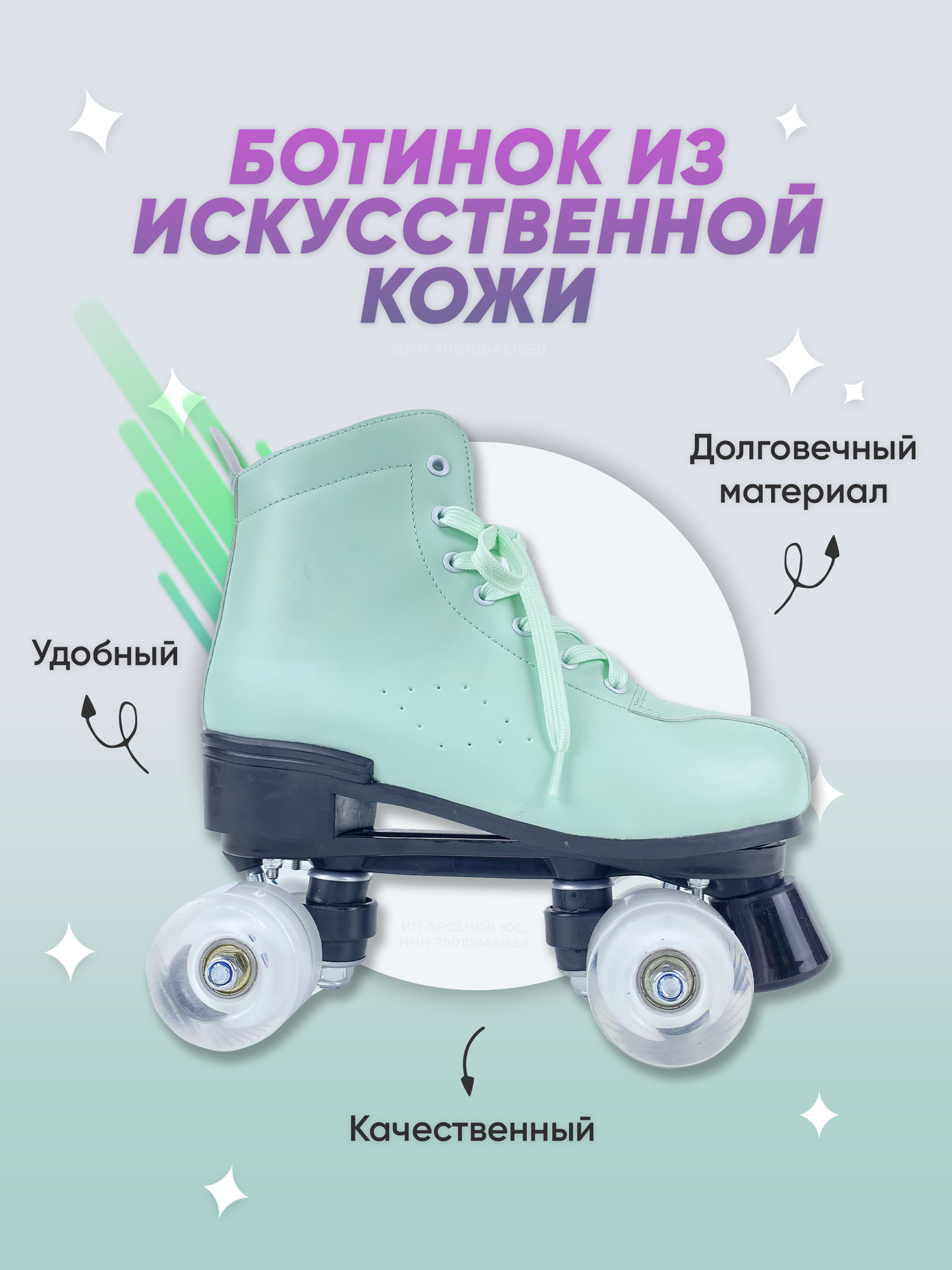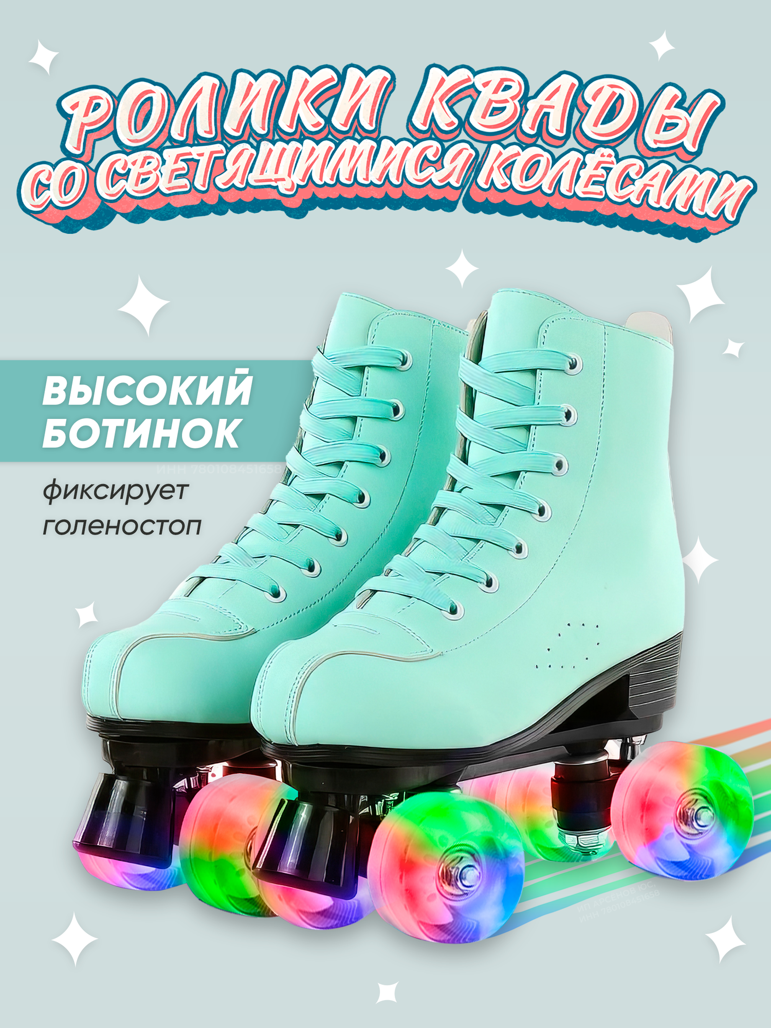 Квады Роликовые коньки Banwei Green, светящиеся колёса, фигурные интересное: