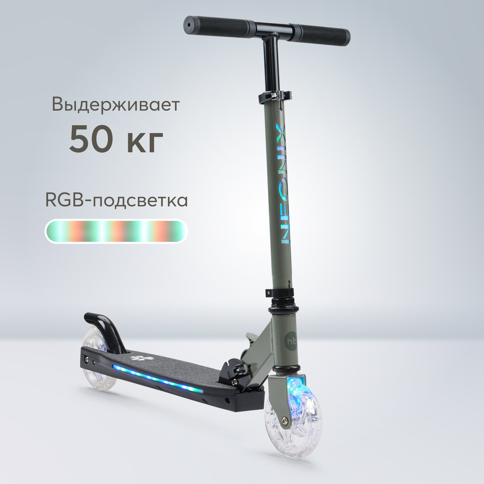 Купить 50036, Самокат Happy Baby NEONIX, со светящимися колесами, высота руля регулируется, темно-зеленый