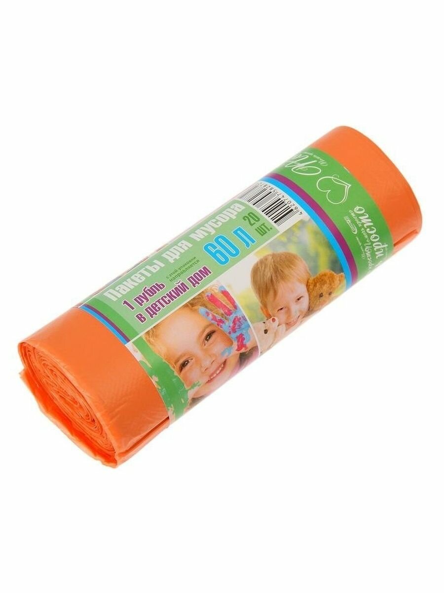 Купить Мешки для мусора Avikomp «Помочь просто», повышенной прочности, 11 мкм, 60 л, рулон 20 шт, оранжевые