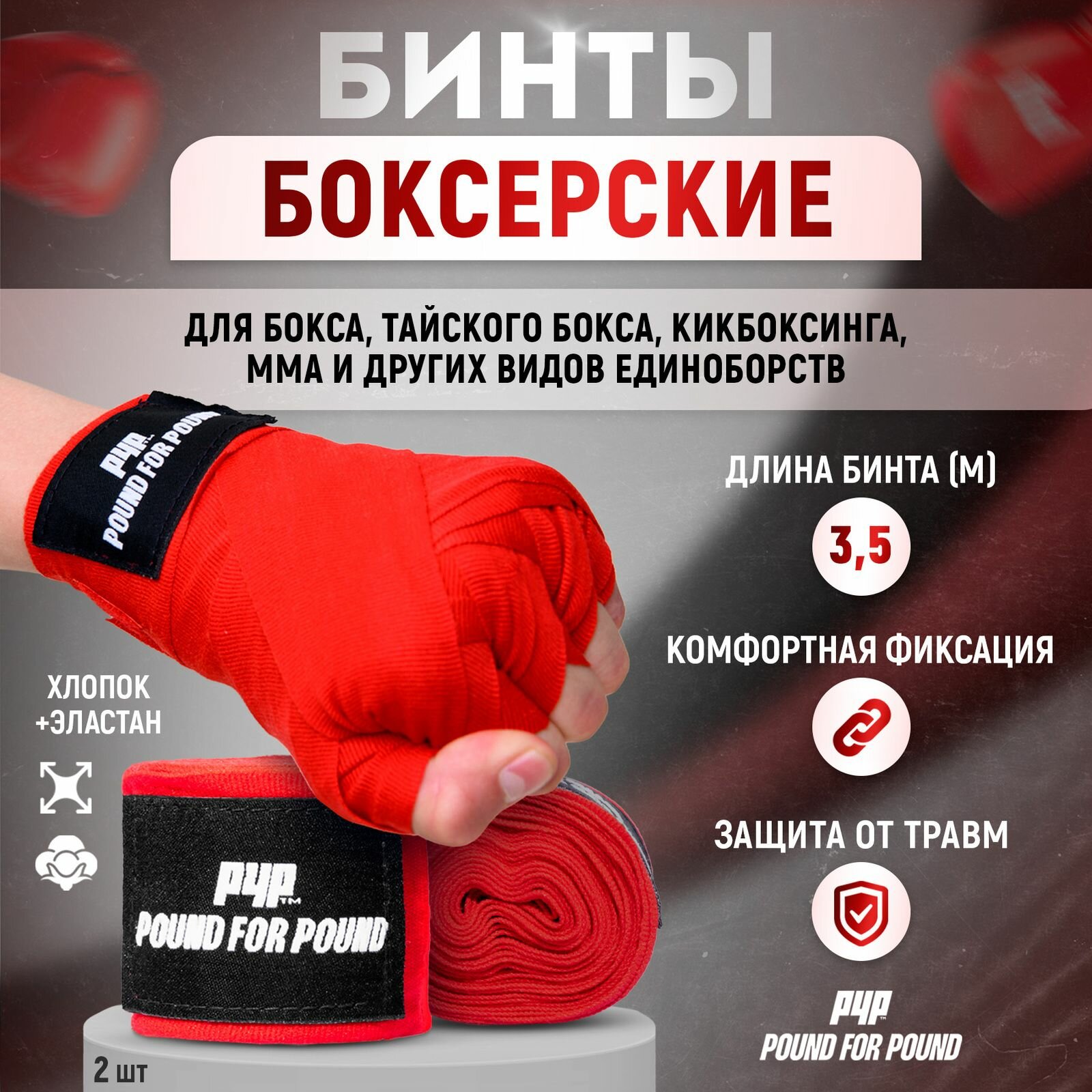 Бинты боксерские эластичные Pound For Pound 3.5 м., красные, 2 шт.