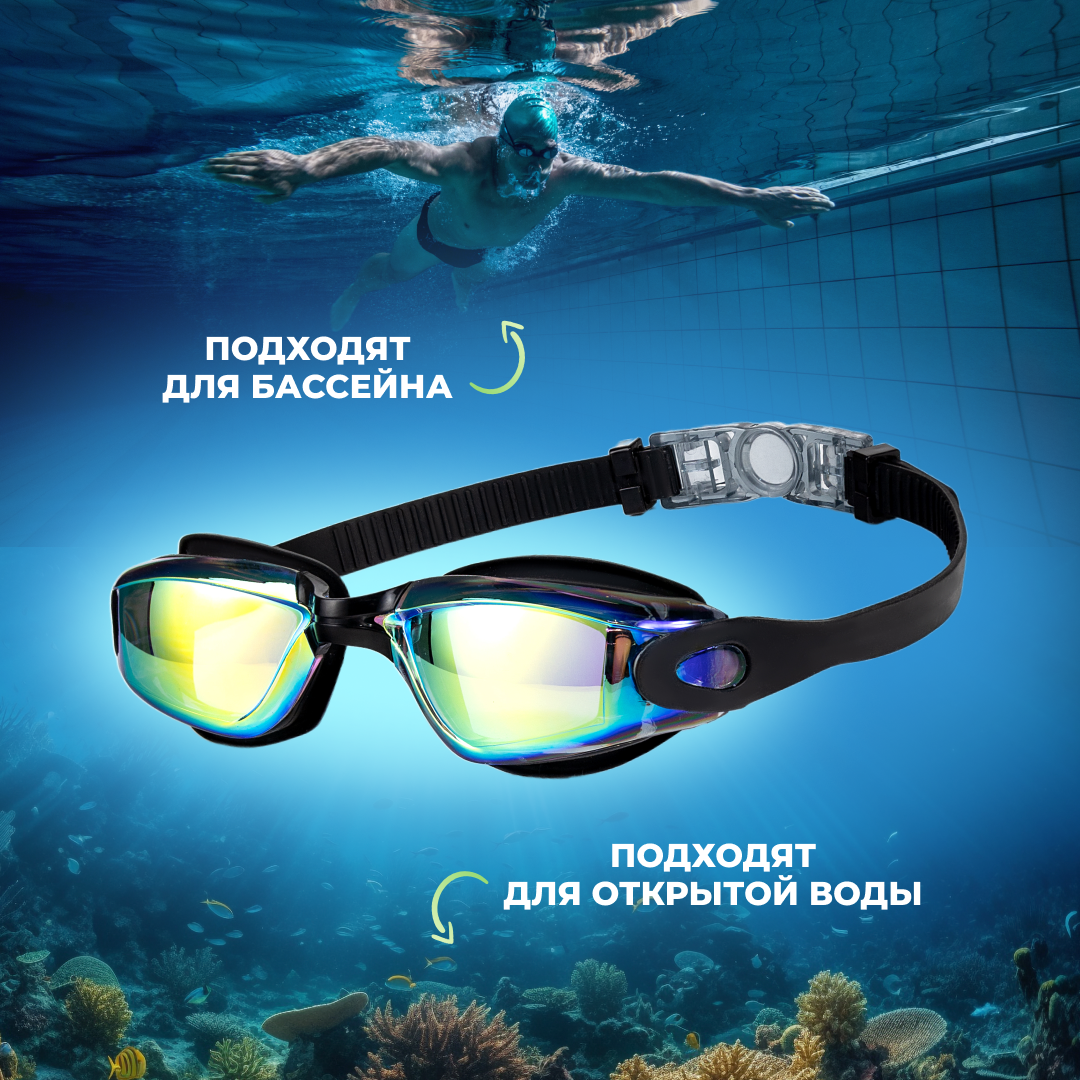 Очки для плавания детские, взрослые, женские, мужские / Подводные плавательные очки для бассейна черные / стекла хамелеон
