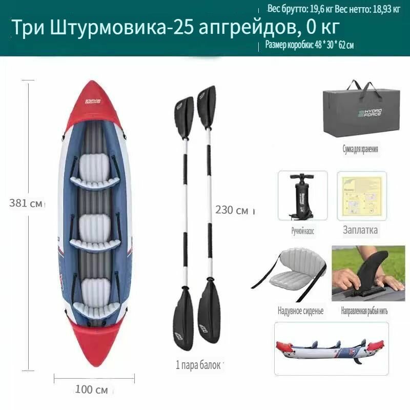 | В комплекте | весла, клапан для слива воды, насос, ремкомплект, сиденье |
