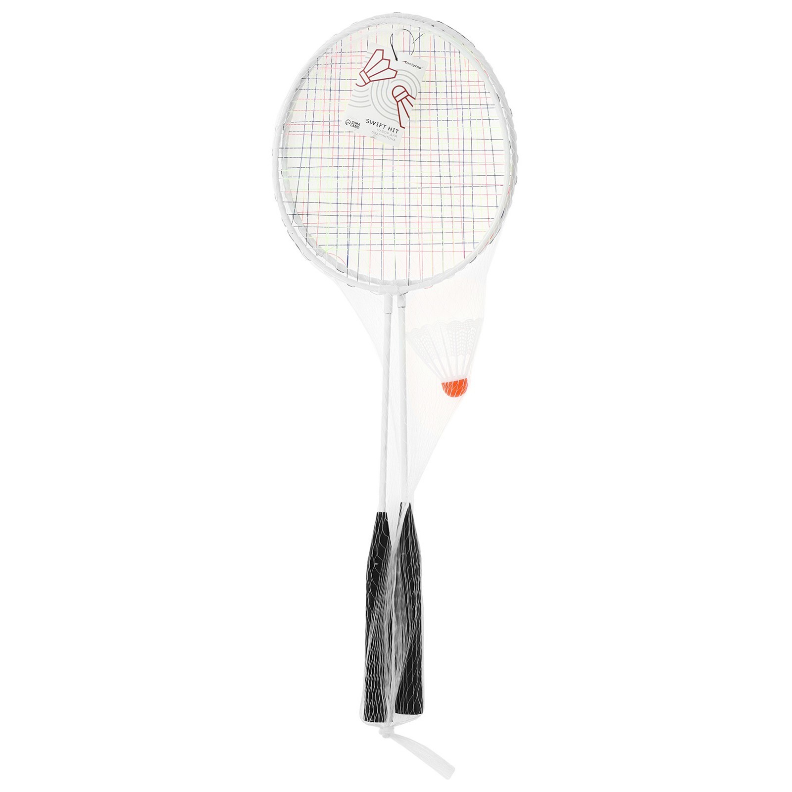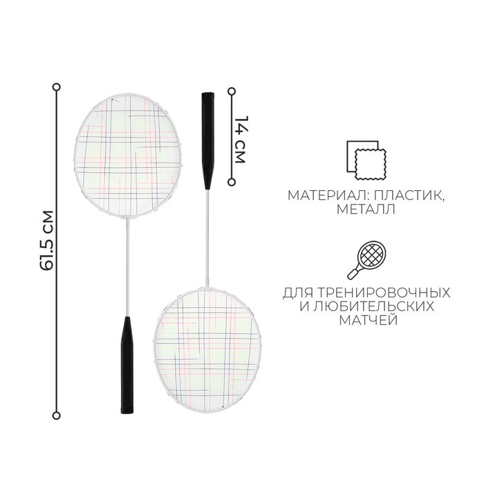 Набор для бадминтона ONLYTOP: 2 ракетки, волан, в сетке, цвет белый