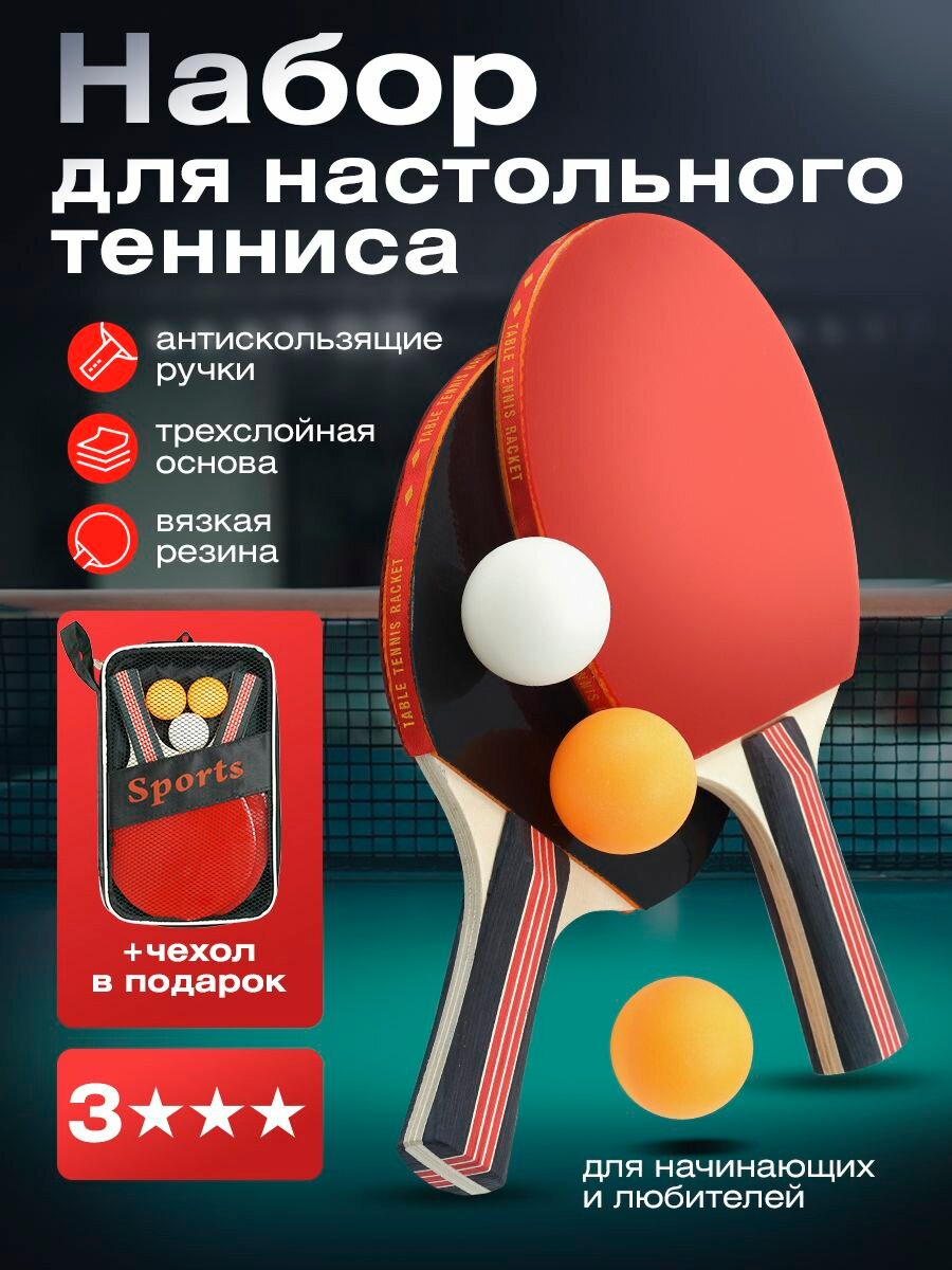 Набор для настольного тенниса в чехле(2 ракетки, 3 мяча)/ ракетки для настольного тенниса интересное: