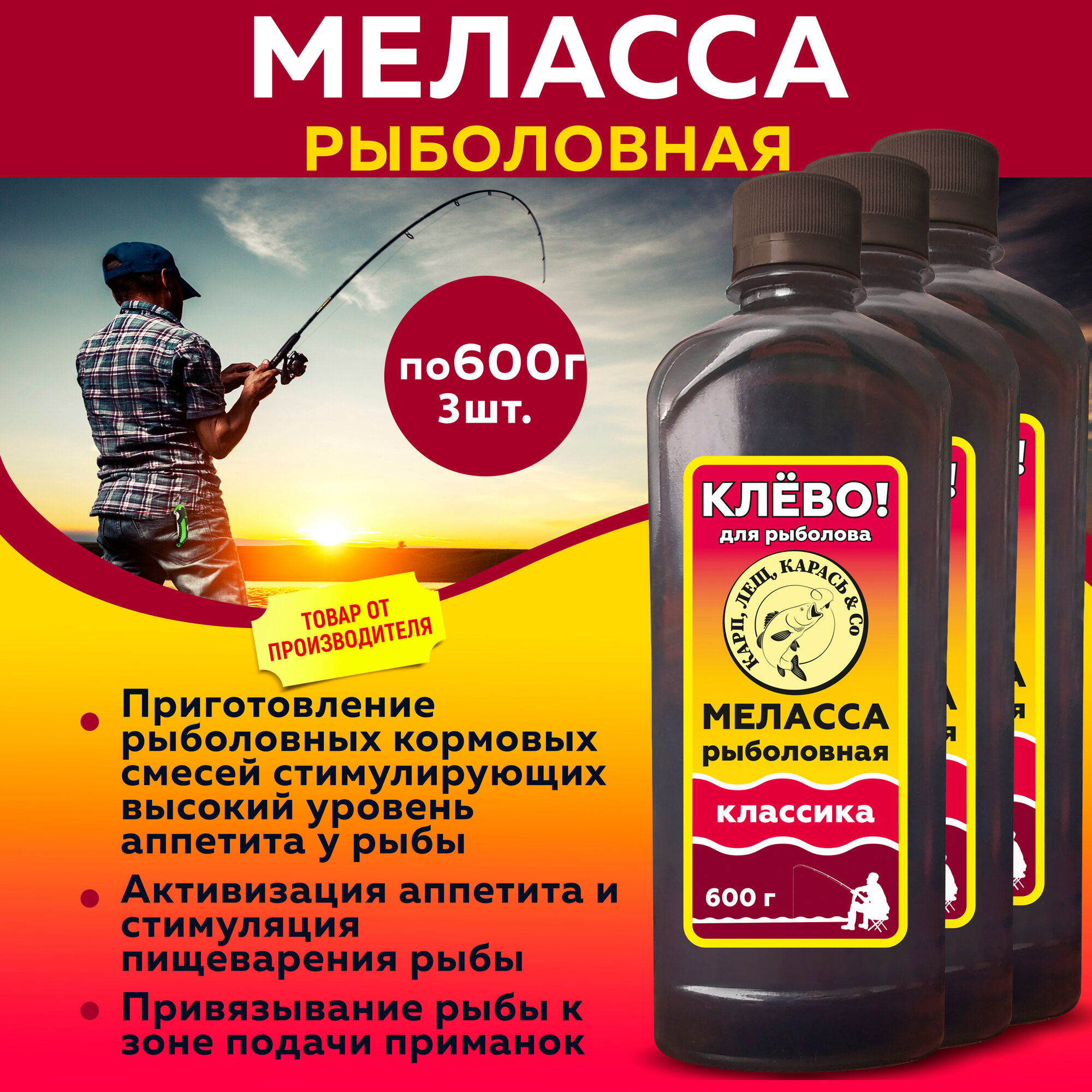 Комплект Меласса для рыбалки классическая, 600г 3 штуки интересное: