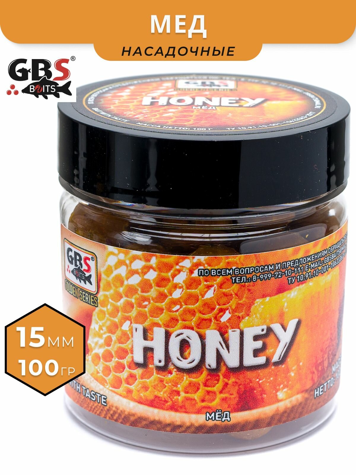 Купить Бойлы GBS насадочные Honey Мёд 15мм 100гр